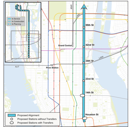 Here’s a best guess list, including only projects that have been proposed by planners. (There are surely even better projects out there that have not been proposed because they’re viewed as unrealistically challenging and expensive.) I’m excluding projects that are already significantly funded and relatively close to groundbreaking, like the IBX and the 2nd Avenue Subway Phase II in New York, BART to San Jose, and Austin’s light rail system.